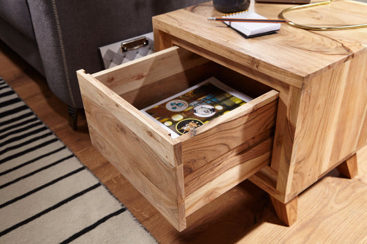 tijdschriftenrek MUMBAI massief hout acacia 2 opbergvakken tijdschriftenrek design brochurehouder landelijke stijl