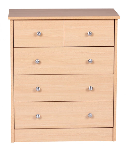 dressoir met 5 lades 53x114x39 cm ladekast wit / eiken modern | Design dressoir hoog smal | Commode woonkamer
