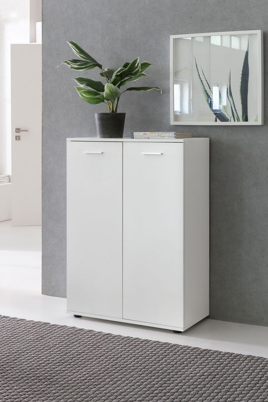 dressoir met 2 lades 79x81x34,5 cm ladekast wit / eiken modern | Design hoog dressoir met deuren | Commode woonkamer