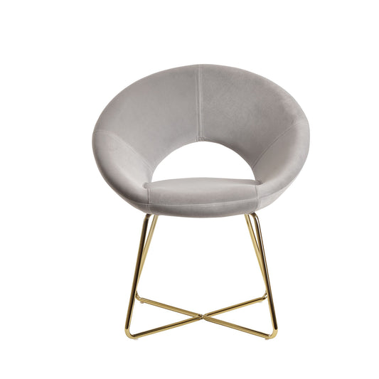eetkamer fluwelen lichtgrijze keukenstoel met gouden poten | Shell stoel stof / metaal | Design gestoffeerde eetkamerstoel | Gestoffeerde stoel
