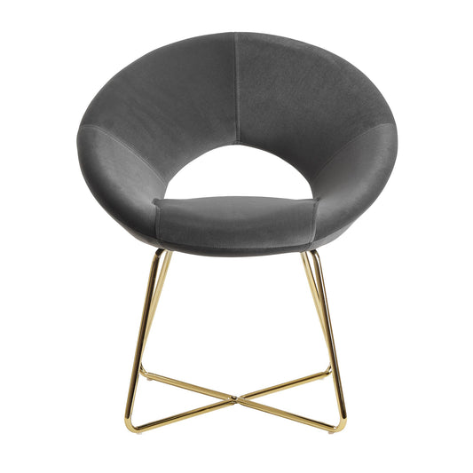eetkamer donkergrijze fluwelen keukenstoel met gouden poten | Shell stoel stof / metaal | Design gestoffeerde eetkamerstoel | Gestoffeerde stoel