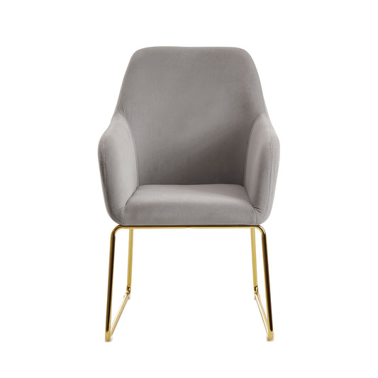 eetkamer set van 2 fluwelen grijze keukenstoelen met gouden poten | Schelpstoel Scandinavisch design | Gestoffeerde stoel met stoffen bekleding | Gestoffeerde stoel