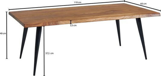 Koffietafel Massief Sheesham-Hout en Metaal 110x60x40 cm Salontafel Bruin | Vierkante Tafel Woonkamer Moderne met Boomrand | Lage Bijzettafel Woonkamertafel