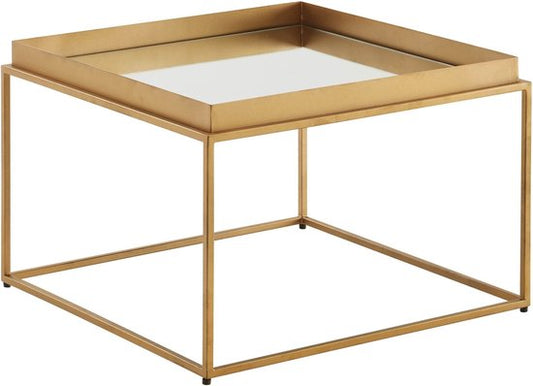Koffietafel Glas en Metaal 60x60x41 cm Salontafel Goud | Tafel Woonkamer Vierkant Gespiegeld | Woonkamertafel Modern | Kleine Bijzettafel Spiegelglas