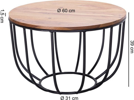 KOFFIETAFEL MANORA 60x39x60 cm Sheesham massief hout / metalen rieten tafel | Ontwerp salontafel | Salontafel Rond | Stubentable Industrial Brown | Houten tafel salontafel massief | Woonkamer met tafel