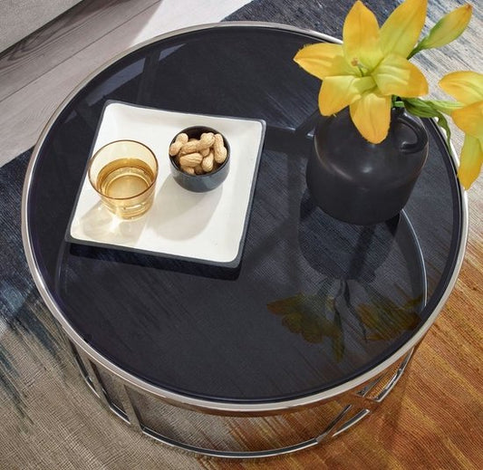 Koffietafel Glas en Metaal 60x60x30 cm Salontafel Zilver | Tafel Woonkamer Rond | Woonkamertafel Modern | Kleine Bijzettafel