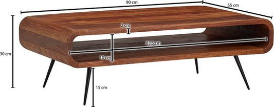 Koffietafel Massief Sheesham-Hout en Metaal 90x55x30 cm Salontafel Bruin | Tafel Woonkamer Rechthoekig Moderne met Opbergruimte | Kleine Bijzettafel Woonkamertafel