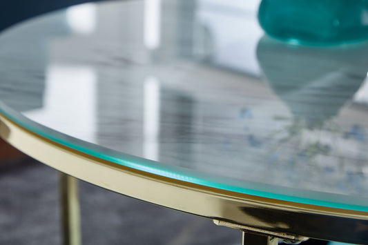 Koffietafel Glas en Metaal 60x60x43 cm Salontafel Goud met Sierklok | Tafel Woonkamer Rond | Woonkamertafel Modern | Kleine Bijzettafel