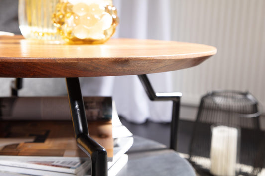 Koffietafel Massief Sheesham-Hout en Metaal 58x58x40,5 cm Salontafel Bruin | Ronde Tafel Woonkamer Moderne met Opbergruimte | Kleine Bijzettafel Woonkamertafel