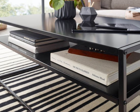 Koffietafel Metaal 100x60x45 cm Rechthoekige Salontafel Zwart met Opbergruimte | Tafel Woonkamer Industrieel | Lage Bijzettafel Woonkamertafel