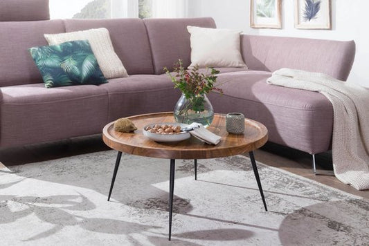 salontafel BAGLI massief hout Sheesham 115 cm brede woonkamertafel design metalen poten landelijke stijl bijzettafel