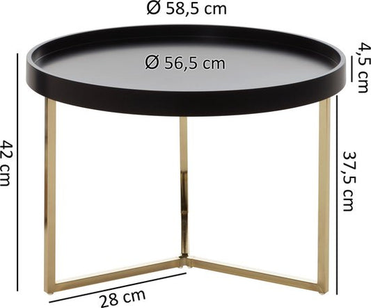 Salontafel EVA 58,5x42x58,5cm zwart / goud salontafel metaal rond | Design retro salontafel modern | Kleine loungetafel met metalen frame | Ronde dienbladlijst met houten plaat