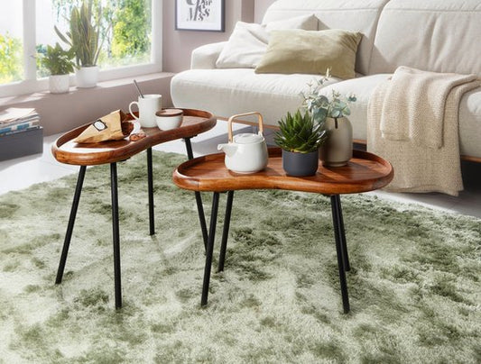 salontafel WL5.669 71x51x40 cm Sheesham massieve banktafel niervorm met metalen poten | Salontafel massief hout | Kleine niertafel echt hout | Stubentisch Holz | Bijzettafel Modern
