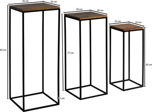Sky Style - Sheesham massief houten bloementafel set van 3 nesttafel kolomtafel decoratieve kolom