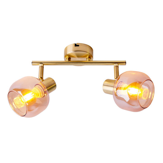 2er spot/plafondlamp "libby", klassieke plafondlamp gemaakt van messing gekleurd metaal en getinte glas in barnsteen, met E14-aansluiting, voor eetkamer, woonkamer, gang of kantoor, 40 cm lang