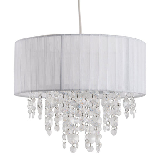 Decoratieve hanglamp "Crystallo", hanglamp gemaakt van metaal, transparant plastic en wit textielmateriaal, E27 -aansluiting, voor eetkamer, woonkamer, gang of kantoor, 30 cm diameter