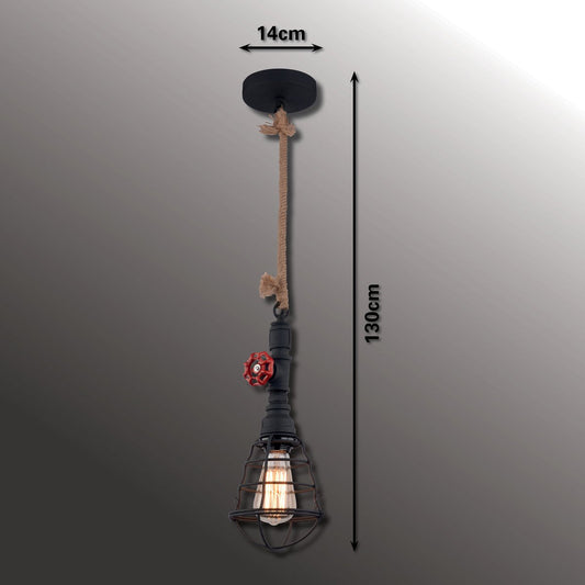 Hanger lamp "regia", black metal, henneptouw, E27 -versie, verlichting voor woonkamer, jeugdruimte of kantoor