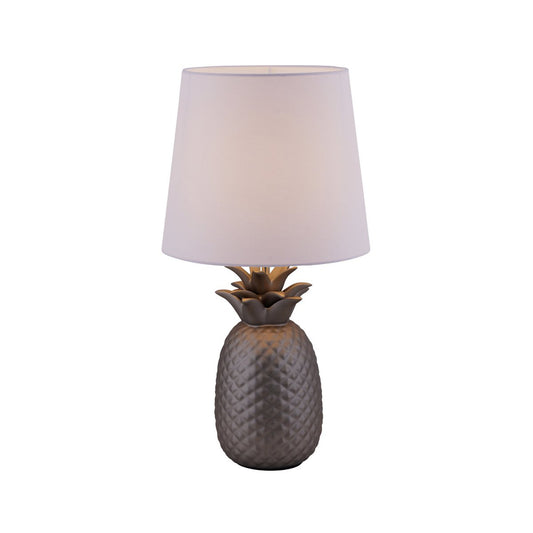 Keramisch tafellicht "ananas", keramische tafellamp met zilverkleurig glazuur en wit stofscherm, met E14-aansluiting, voor eetkamer, woonkamer, gang of kantoor, taflamp 45 cm hoog