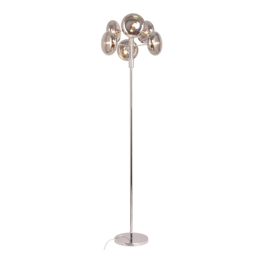 Staande lamp "Orion" rokerig, ongeveer 165 cm hoog, gemaakt van chroomkleurig, roestvrij staal en rookglas, G9-aansluiting, verlichting voor woonkamer, eetkamer of kantoor.