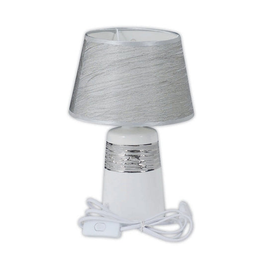 Keramische tafellamp "Vittoria" 31 cm hoog, Ø 20 cm, gemaakt van keramiek, metaal en stof gemaakt van polyester, wit en zilver
