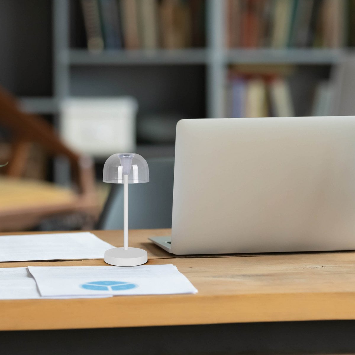 2 Set LED Battery Table Light "Gomba" voor buiten en binnen, gemaakt van metaal en plastic in wit, 18,5 cm hoog