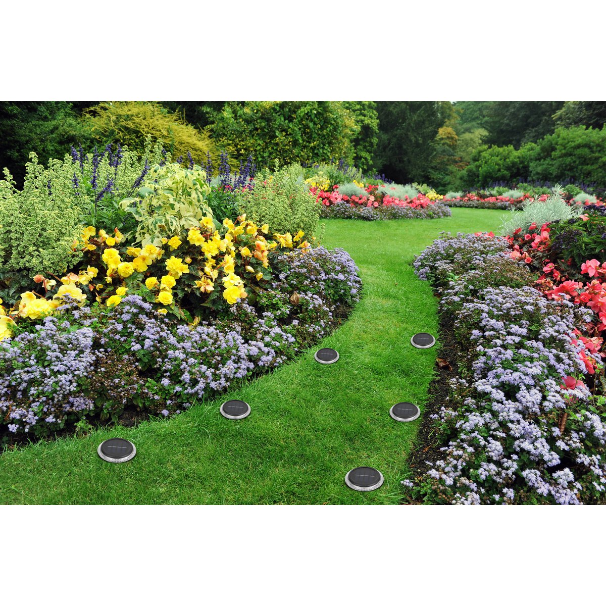 6 Set Solar-Boden-Sprießleucht Ø ca. 11,2 cm, zwart plastic, schemeringsensor, voor toegang, terras en paden