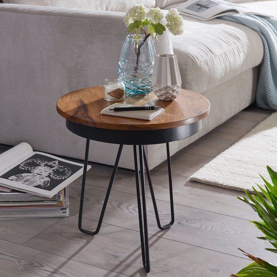 Bijzettafel Sheesham- 43cm x45cm Industrieel