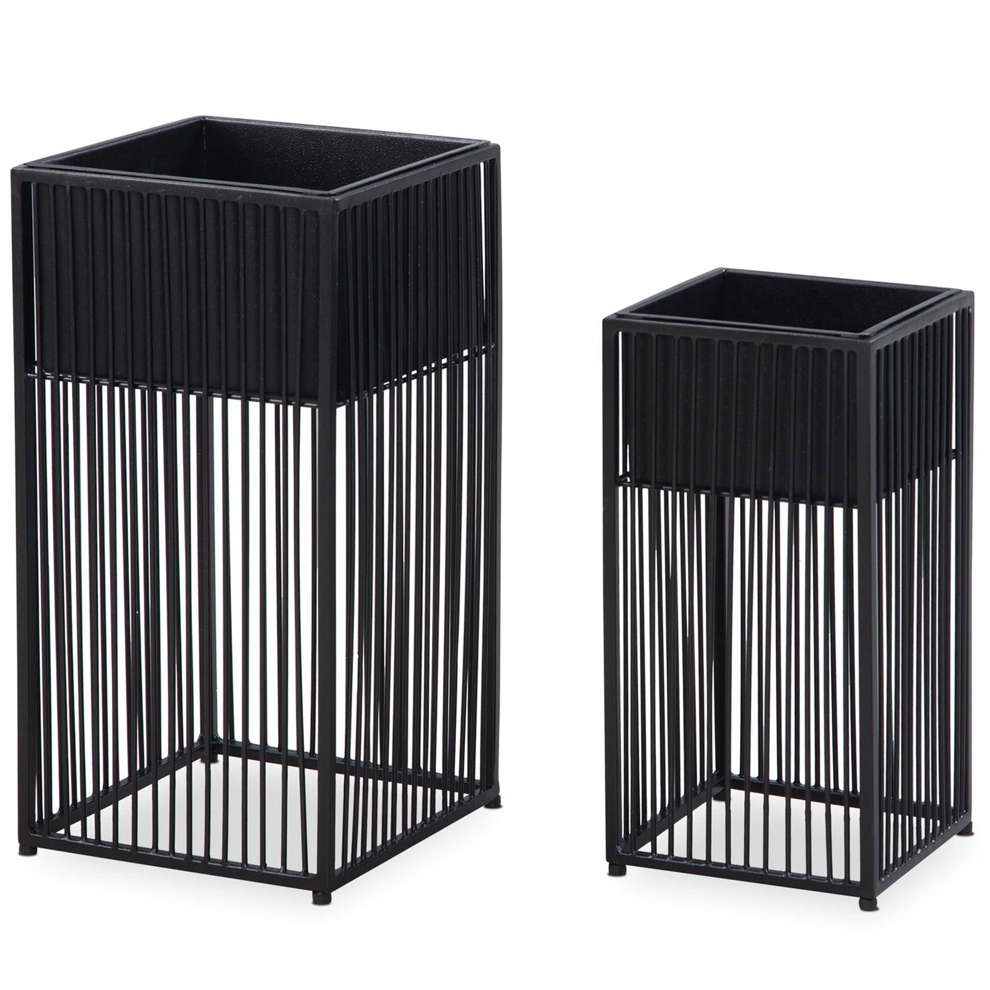 bloempot set van 2 metalen plantenpotten zwart met frame | Design plantenpot vierkant | Bloempot plantenbak voor binnen