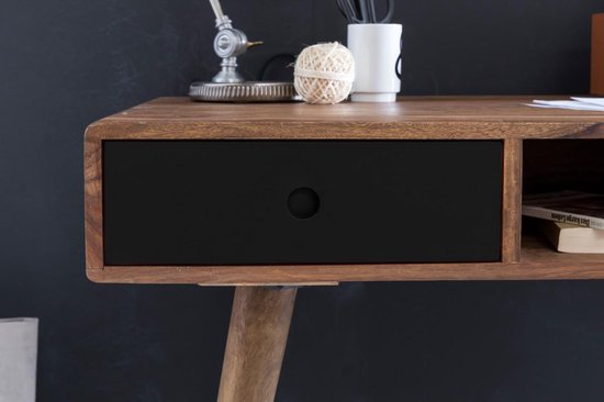 bureau REPA zwart 120 x 60 x 75 cm massief houten laptop tafel Sheesham Nature | Landelijke stijl bureau met 2 laden | Kantoor tafel Pc-tafel