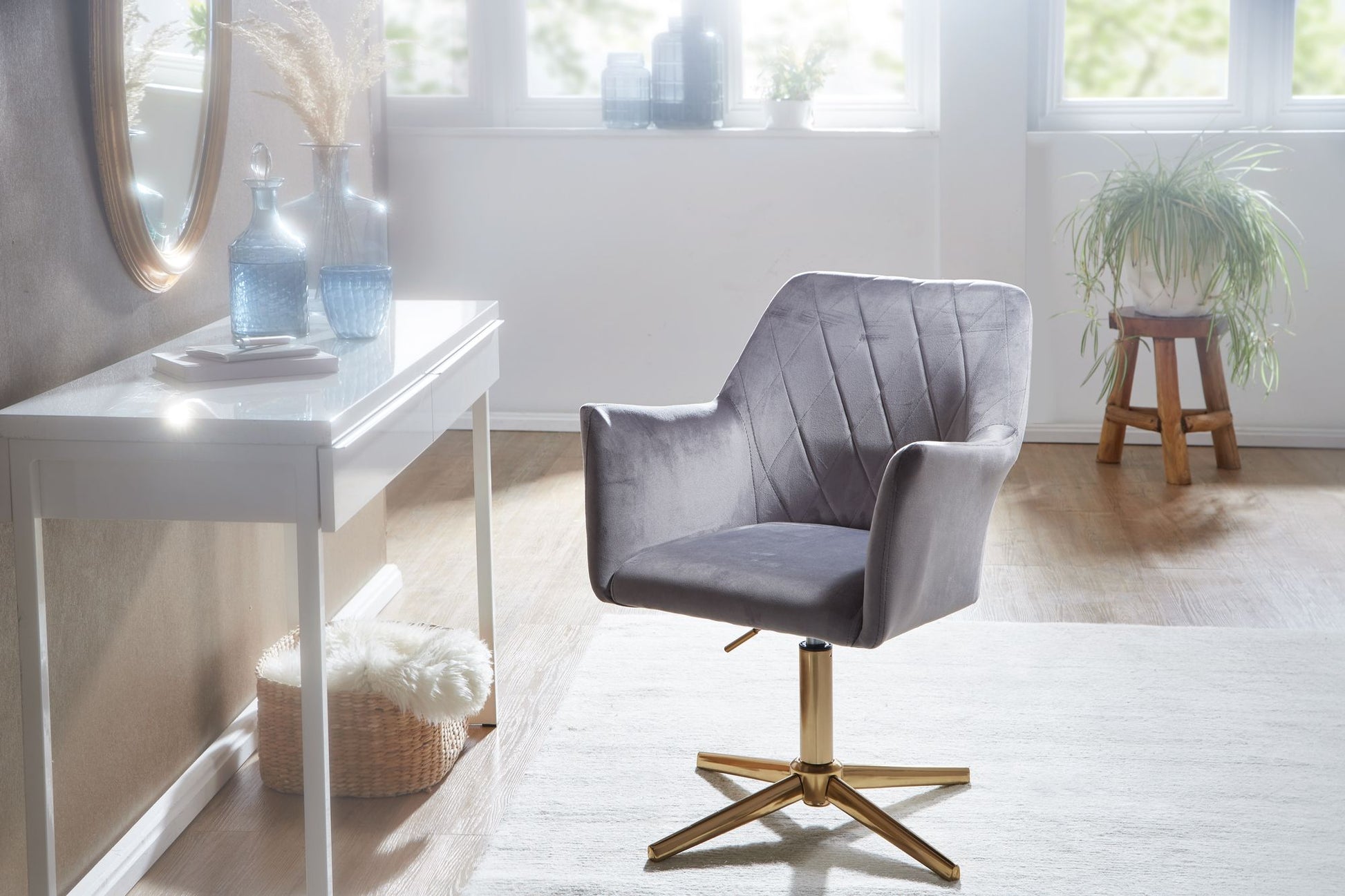 bureaustoel grijs velvet design draaifauteuil met rugleuning | kuipstoel 120 kg in hoogte verstelbaar | Werkstoel zonder wielen | Stoel bureau thuiskantoor Draaibaar