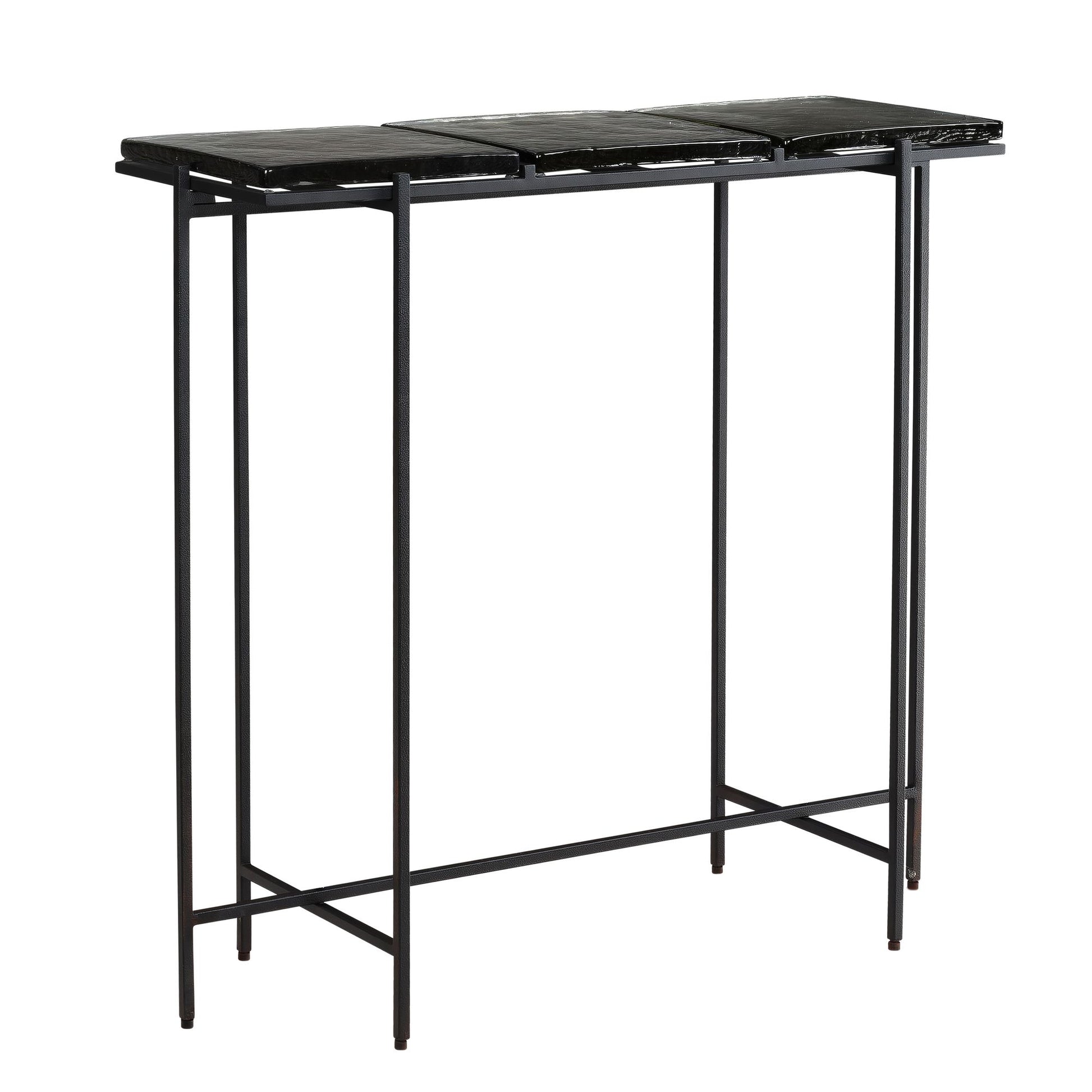 consoletafel zwart 90x29x85 cm design dressoir glazen hal, opbergtafel met metalen frame smal modern, haltafel met afneembare tafelbladen, haltafel lang hoog