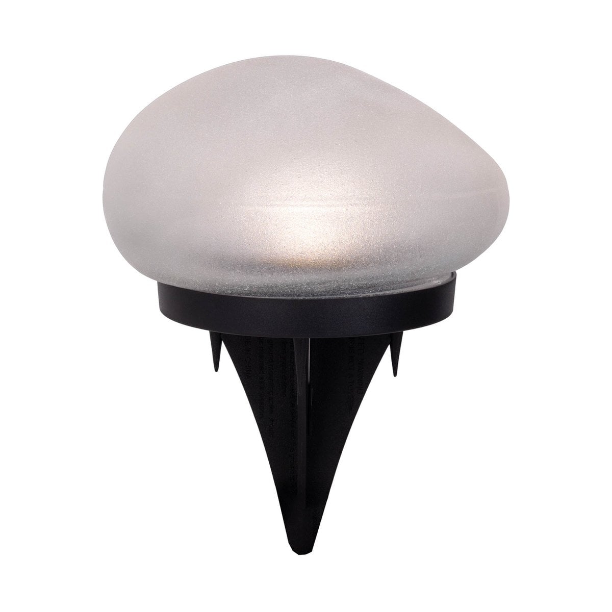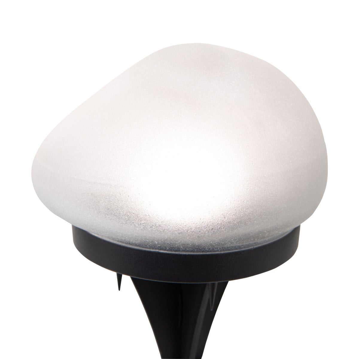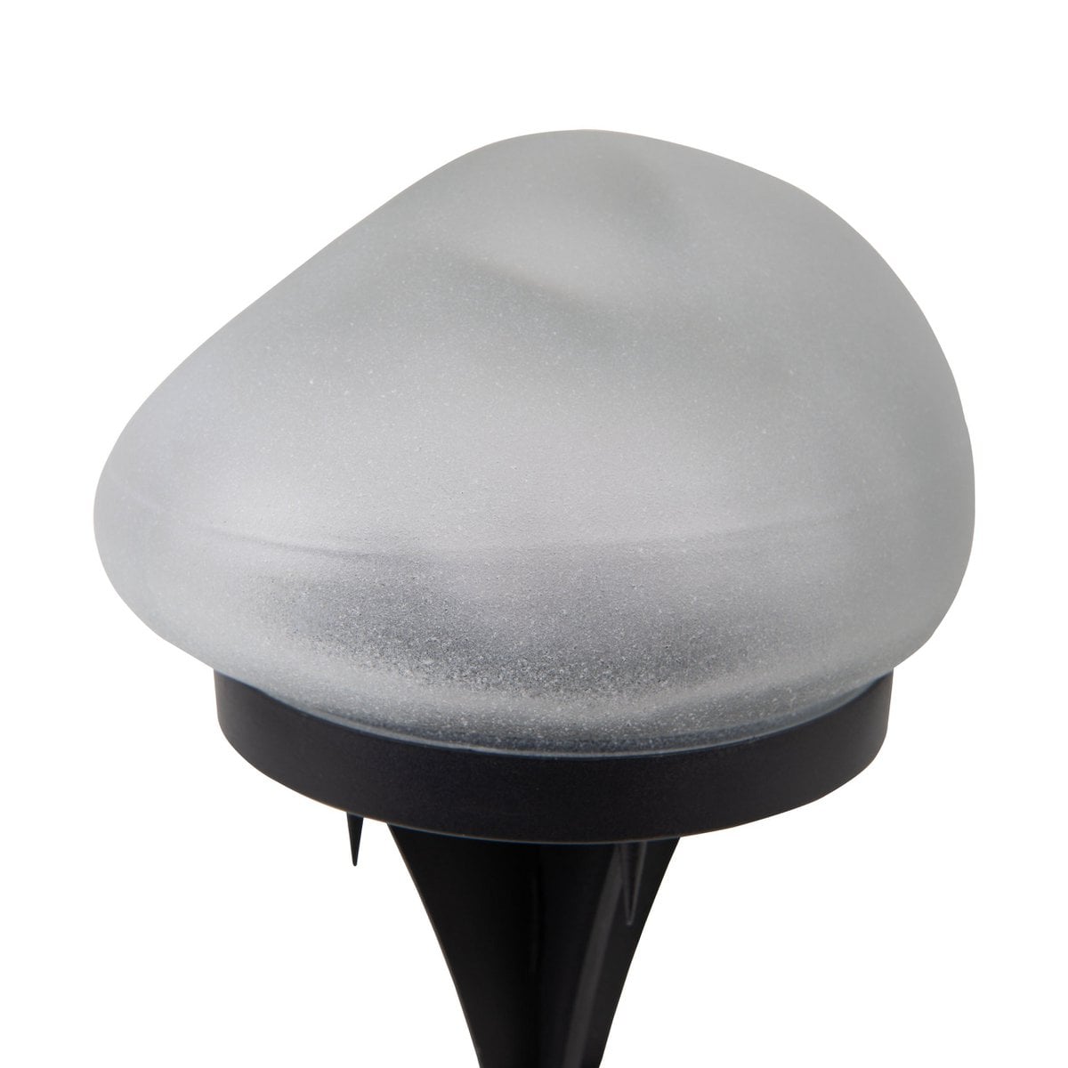De spiesjes "Guri" 14 x 12 cm, 8,5 cm hoog, zwart plastic, zwaar, transparant glas, geïntegreerde LED's, warm wit