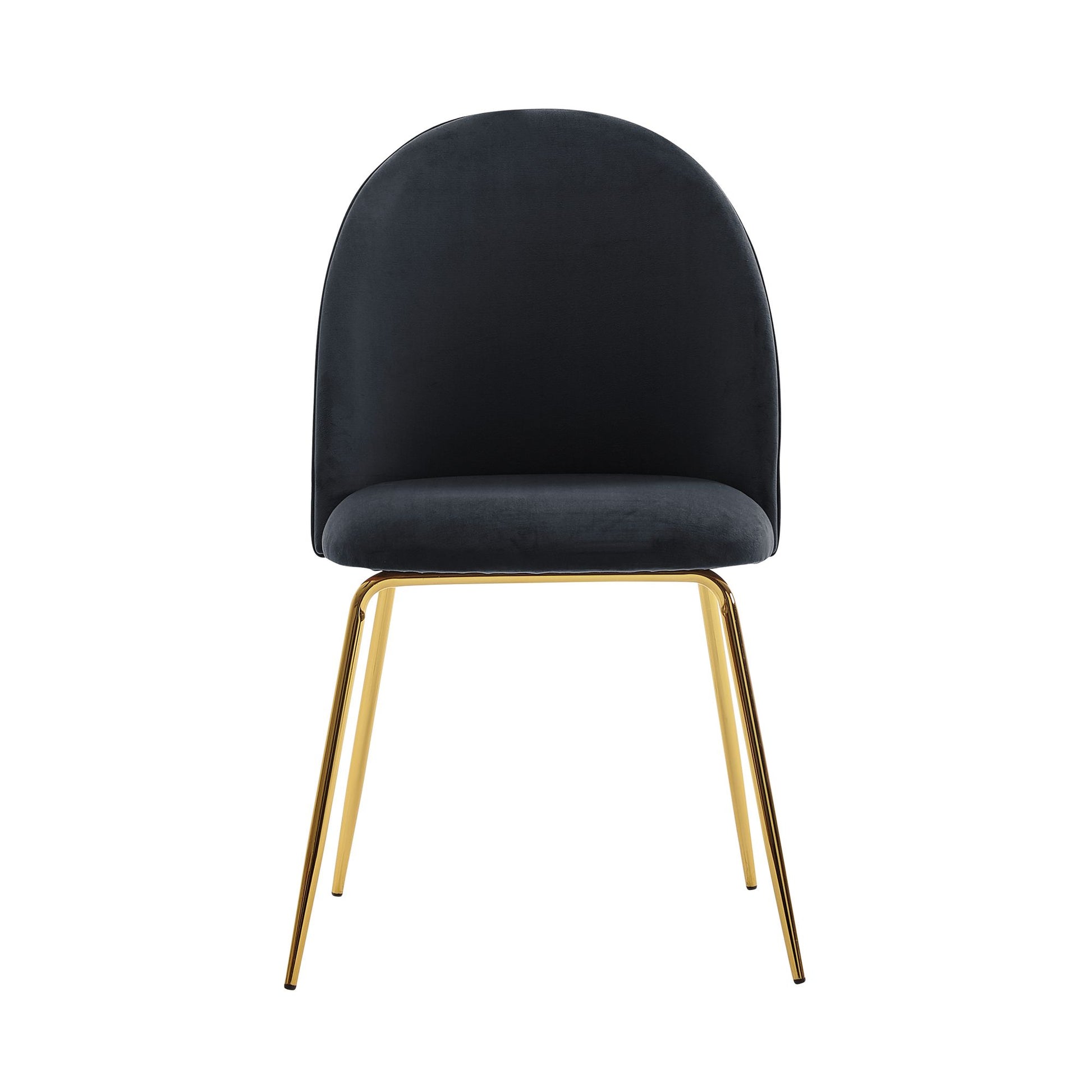 Design eetkamerstoel set van 2 fluweel zwart gestoffeerd, keukenstoel stof met gouden poten, Scandinavische schelpstoel, gestoffeerde stoel met fluwelen bekleding