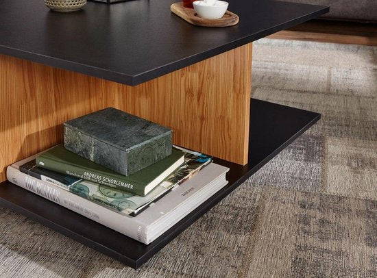 ontwerp Salontafel in een moderne look Salontafel met twee laden en twee compartimenten Rollen onderaan de tafel afmeting Breedte: 70 cm Hoogte: 36,5 cm Diepte: 70 cm Interne afmetingen van de compartimenten BxHxD: 34,5 x 28 x 34,5 cm Interne afmetingen van de laden BxHxD: 11 x 27 x 28 cm Bodemvrijheid: 7 cm Max. Laadvermogen: 20 kg kleur Tafel en bodemplaat: antraciet Laden en scheidingswanden: zand eiken bijzonderheden Twee ruime laden voor kussens of de warme deken Tijdschriften en Co. vinden hun plaats in de open compartimenten De harde vloerwielen maken de tafel tot een mobiel meubelstuk De tafel is gecoat met melaminehars voor bescherming Dankzij de melamine is de salontafel ook waterafstotend materiaal spaanplaat leveringsomvang Een banktafel zonder decoratie Installatiemateriaal en instructies inbegrepen montage Eenvoudige montage dankzij doordachte constructie zorg instructies Het is het beste om de oppervlakken af te vegen met een lauwe, licht vochtige katoenen doek. Vermijd schuurmiddelen en agressieve reinigingsmiddelen en verwijder restvocht met een pluisvrije doek.