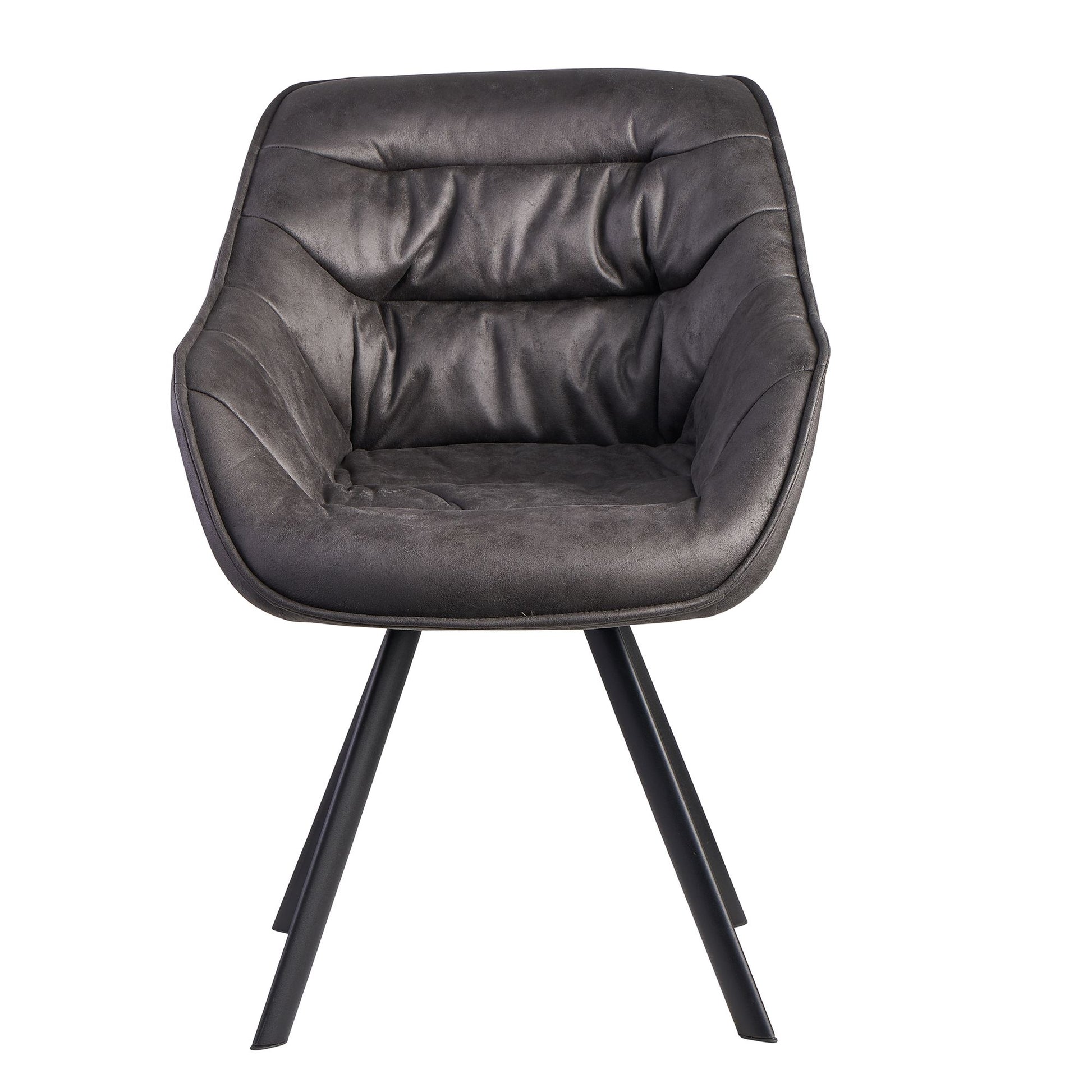 dining suede look grijs gestoffeerd | Keukenstoel met zwarte poten | Moderne kuipstoel met armleuningen | Design gestoffeerde stoelbekleding