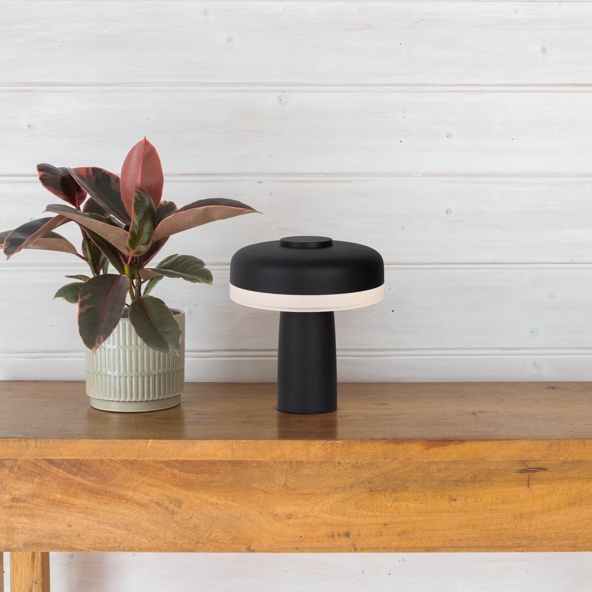 Draadloos tabletlicht "pilu", 16,5 cm hoog, boven Ø van 15 cm, metaal in zwart, wit plastic, geïntegreerde LED's, 280 lumen, dimbaar door aanraaksensor, warm wit wit