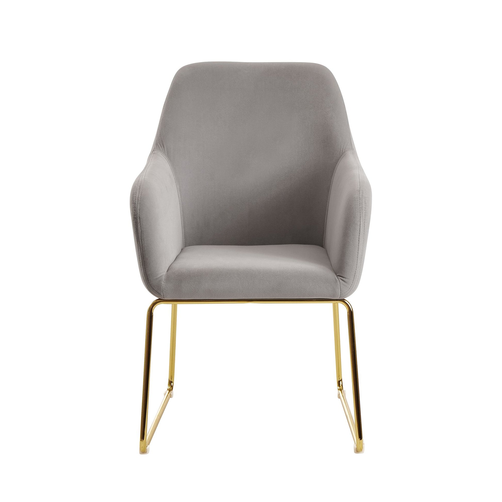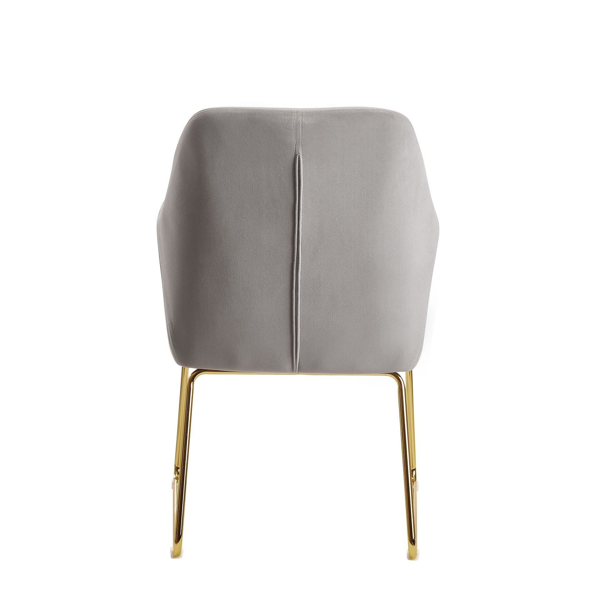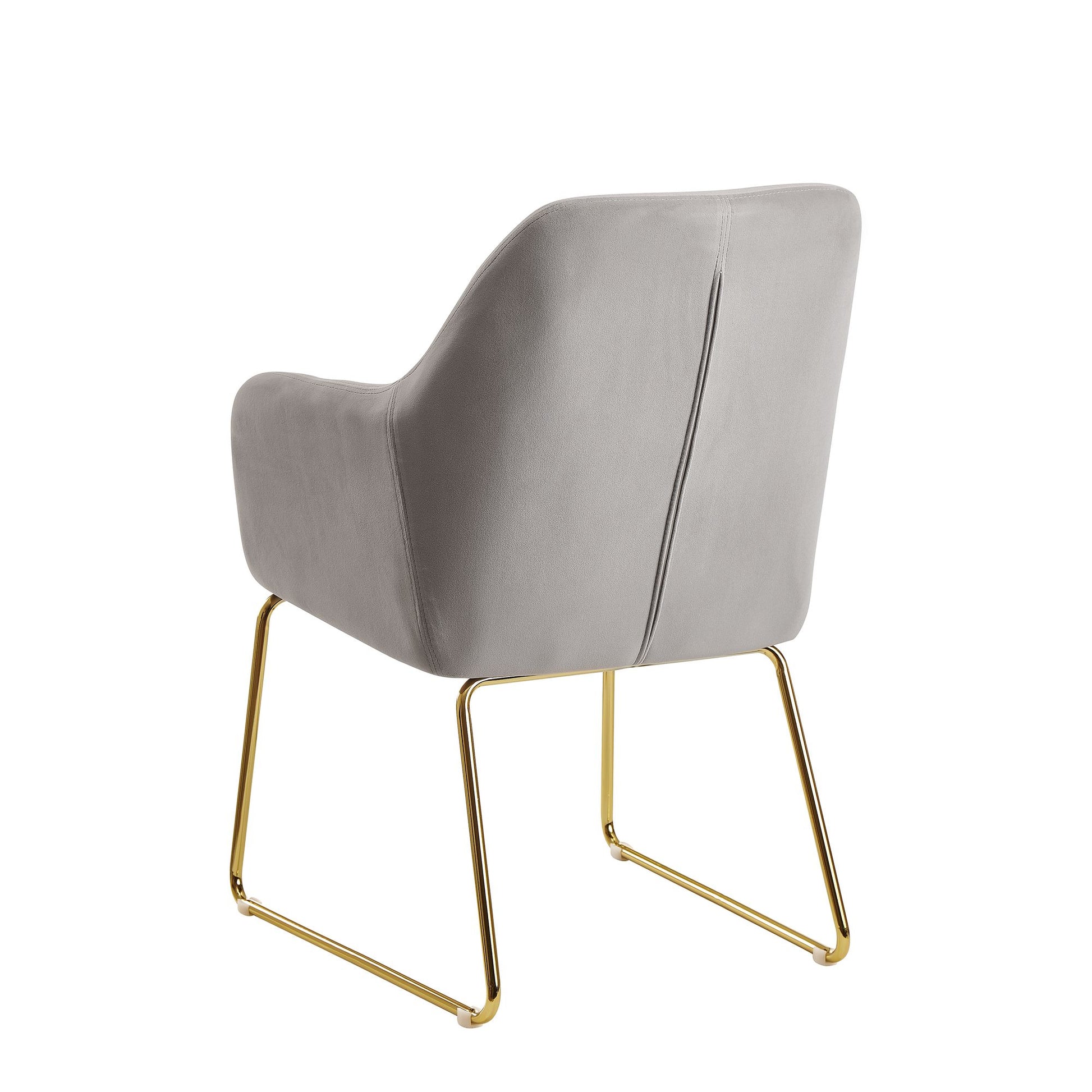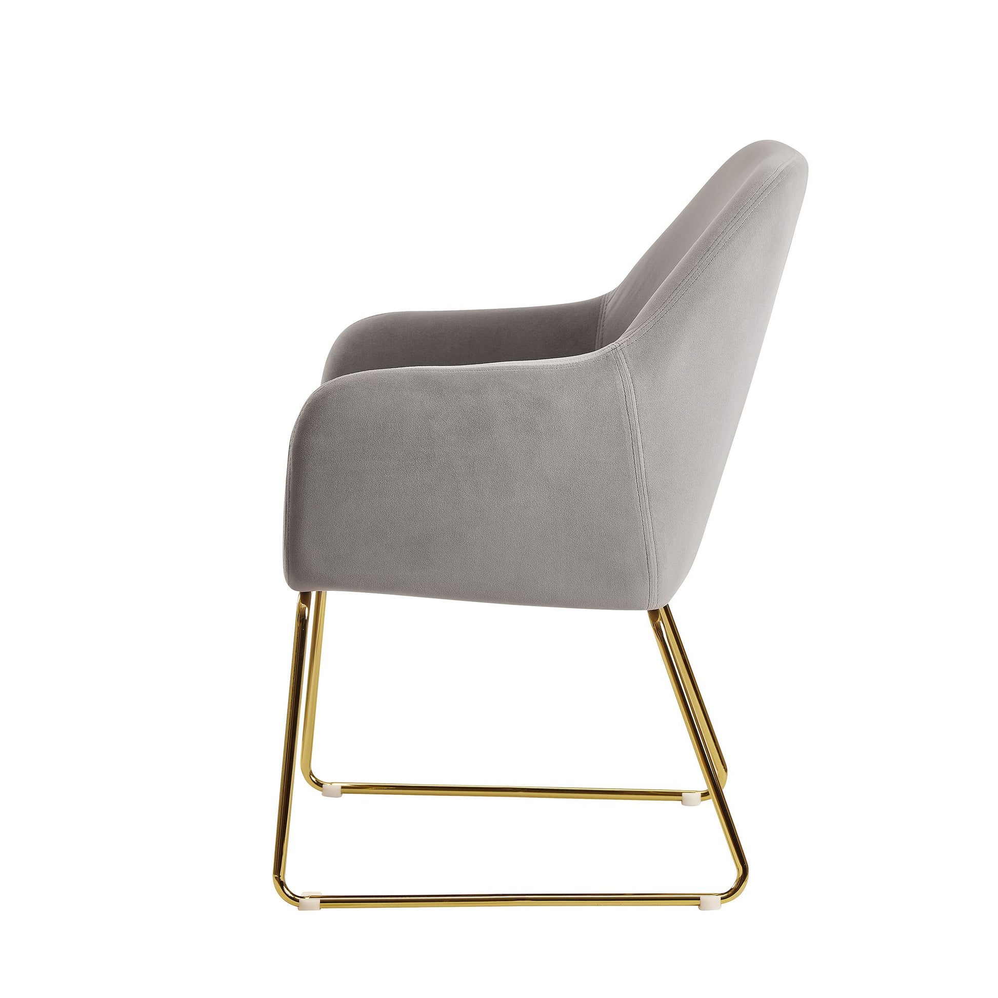 eetkamer fluwelen lichtgrijze keukenstoel met gouden poten | Shell stoel stof / metaal | Design gestoffeerde eetkamerstoel | Gestoffeerde stoel