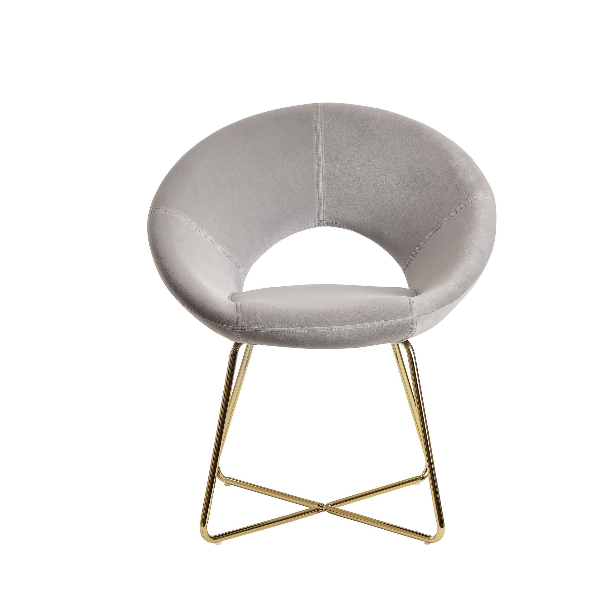 eetkamer fluwelen lichtgrijze keukenstoel met gouden poten | Shell stoel stof / metaal | Design gestoffeerde stoel | Stoel eetkamer gestoffeerd