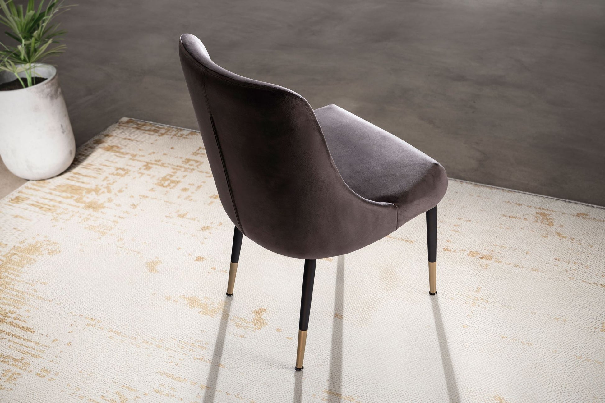 Eetkamerstoel fluweelgrijze keukenstoel met zwarte poten, schelpstoel modern, gestoffeerde stoel met stoffen bekleding, stoel bekleed met geïntegreerd rugkussen