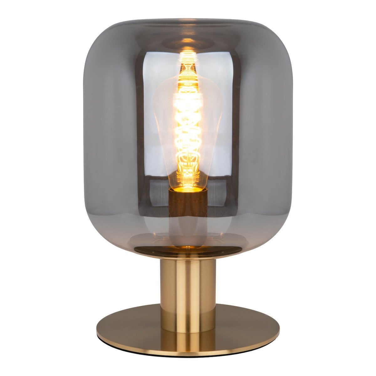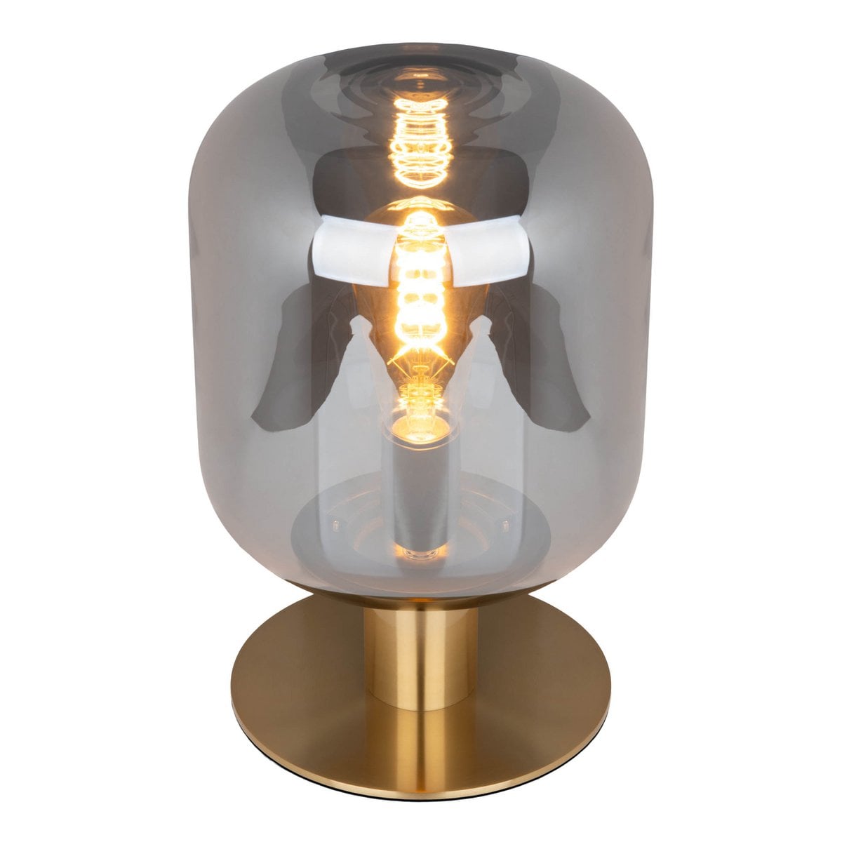 Glazen tafellicht "Alessio", 30 cm hoog, Ø 20 cm, goudkleurig metaal, rookglas, E14