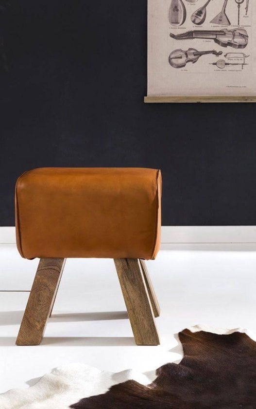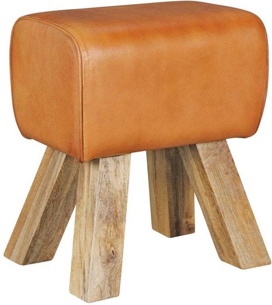 Kruk leer bruin massief houten springbok voetenbank gymnastiek kruk