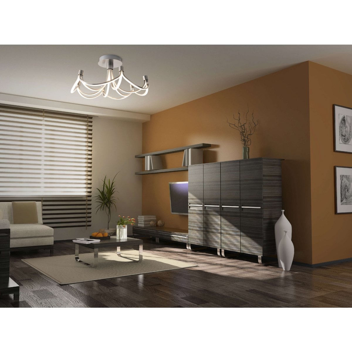 LED -plafondlamp "festival" Ø 60 cm, metalen nikkel mat en plastic, stevig gebouwd -in LED's, verlichting voor woonkamer, eetkamer, kantoor of gang