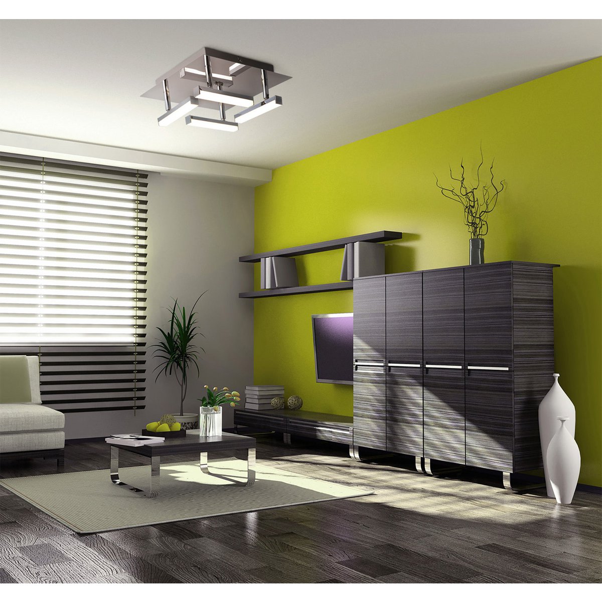 LED -plafondlamp "Turijn" 25 cm x 25 cm, ongeveer 11 cm hoog, chroom -gekleurd metaal, opaalgecoleerd plastic, geïntegreerde LED's, warm wit