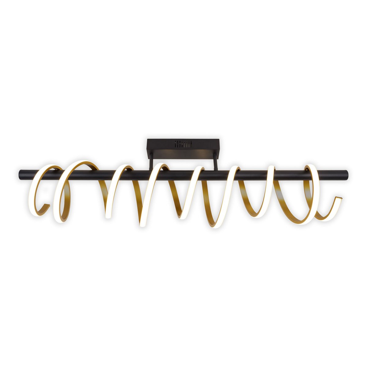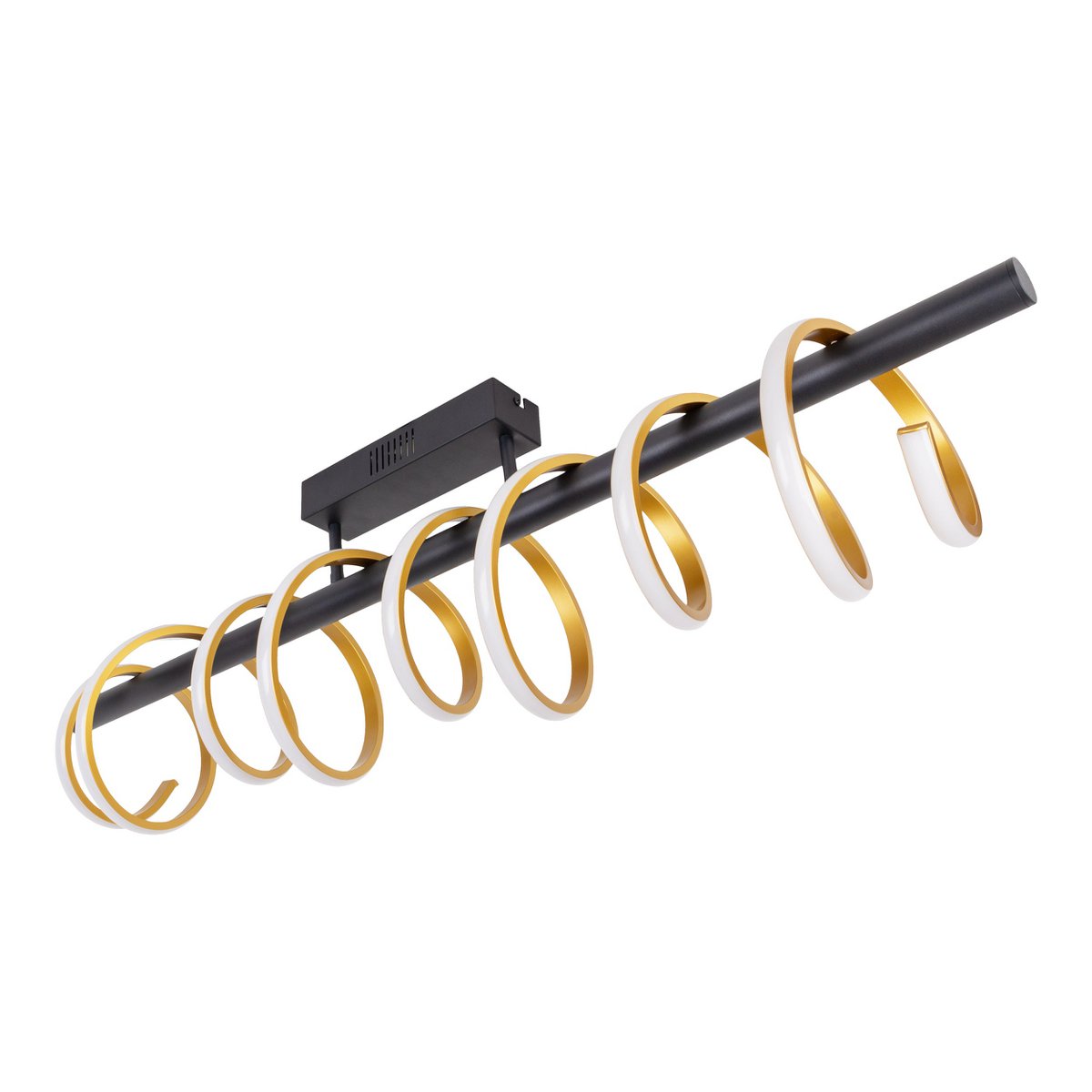 LED -plafondlicht "Belleza", moderne metalen plafondlamp en plastic in zwart, goud en wit, met stevig gebouwd -in LED's, 100 cm lang. De ideale verlichting voor woonkamer, eetkamer of kantoor.