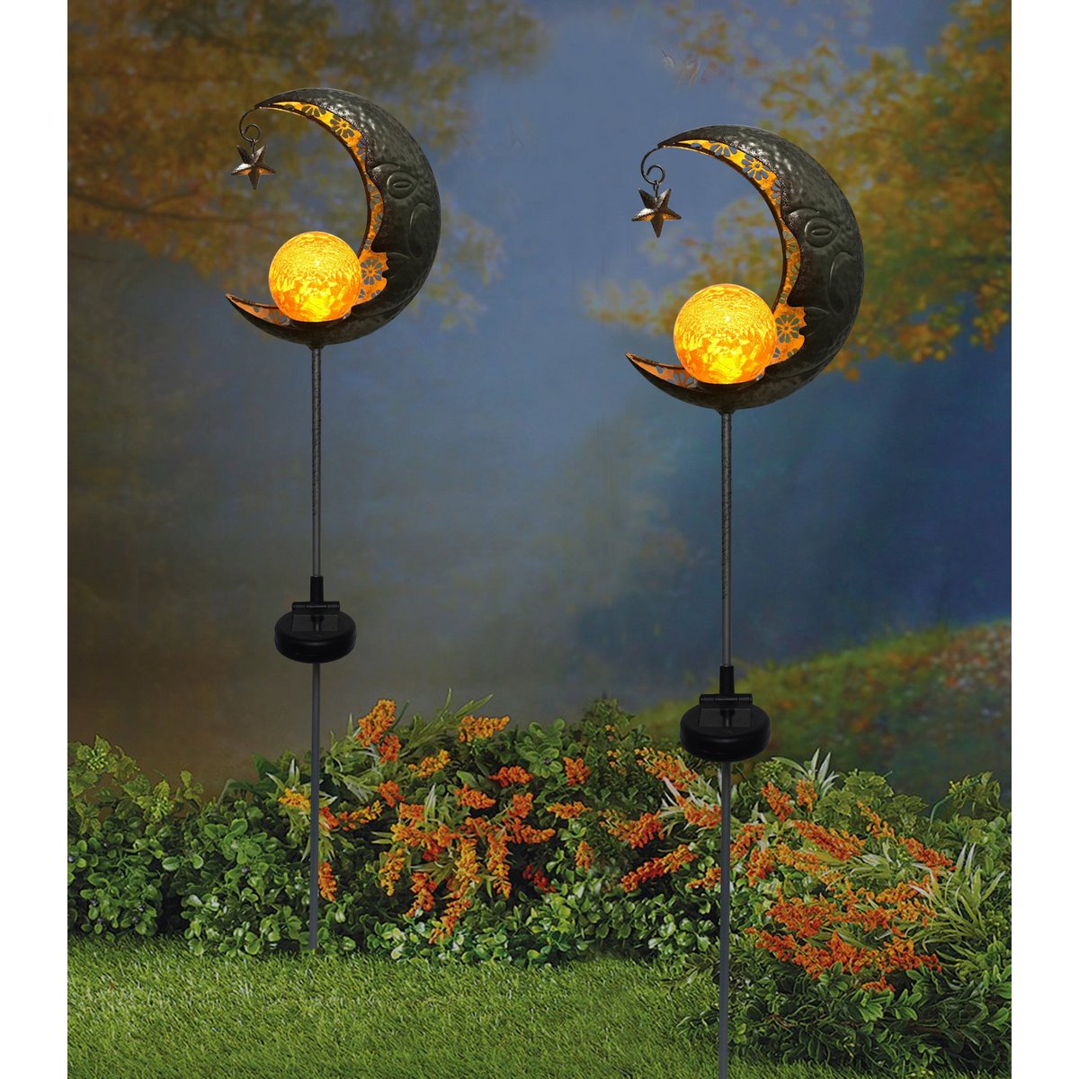 Led Solar Earth Spit "Moon", voor buiten, metaal en glazen aarde spies in zilver, met geïntegreerde LED