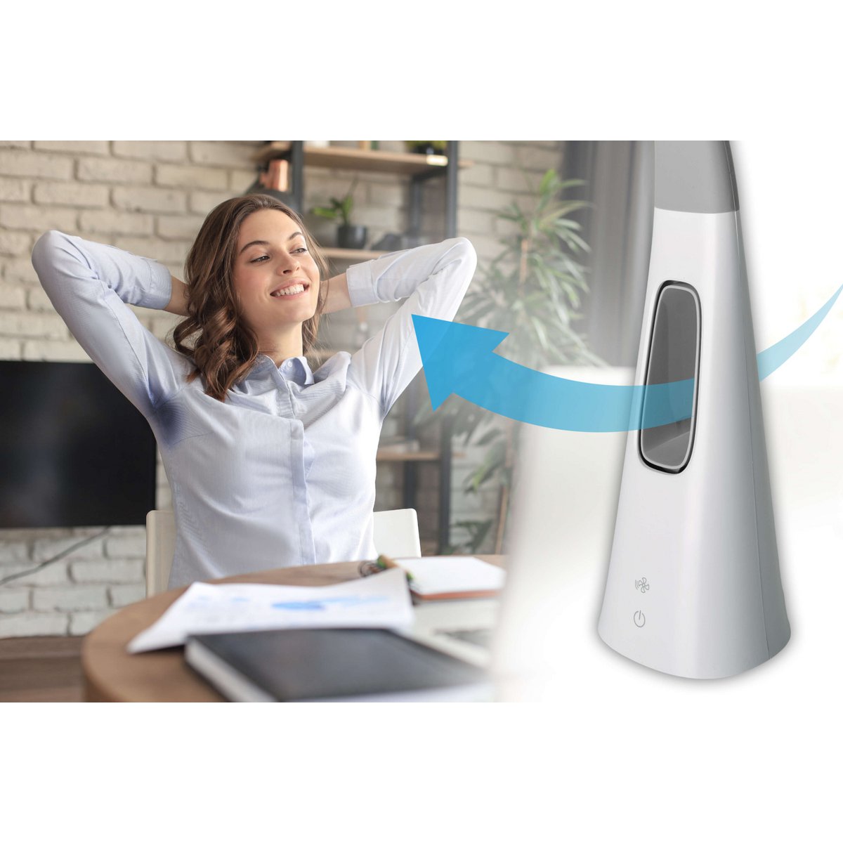 LED-tafellicht "Ventu" met ventilator, met aanraking, dimable, gemaakt van wit plastic, stevig ingebouwde LED's, 40 cm hoog