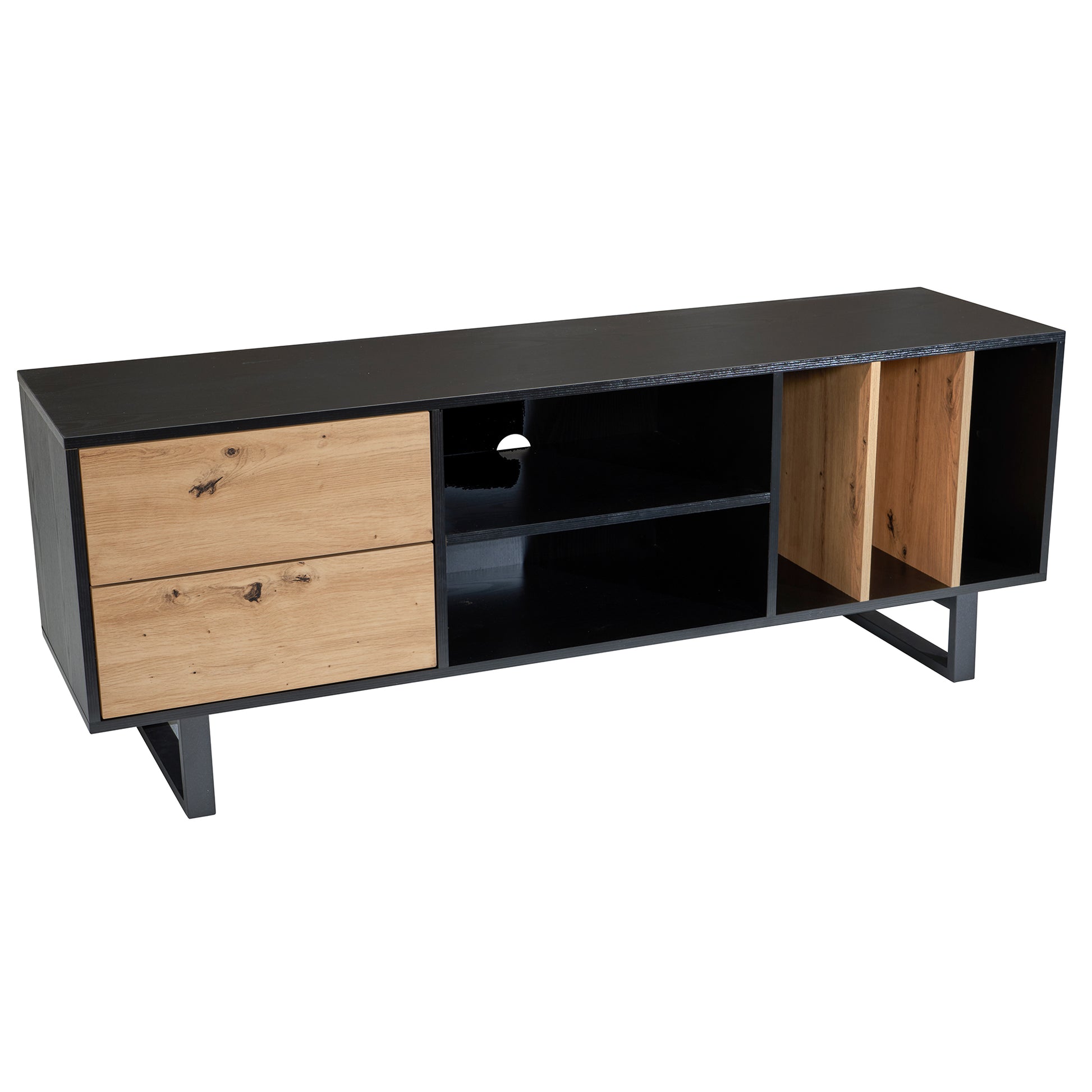 Lowboard zwart met eiken decor 150x55x40 cm tv-kast modern, design tv-kast hoog, tv-tafel tv-kast met lades en plank, tv-kast woonkamer