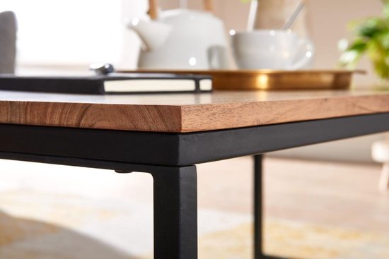 salontafel 110x60x40 cm massief houten metalen salontafel salontafel acacia | Industriële kamertafel | Houten tafel, salontafel, massief | Tafel woonkamer