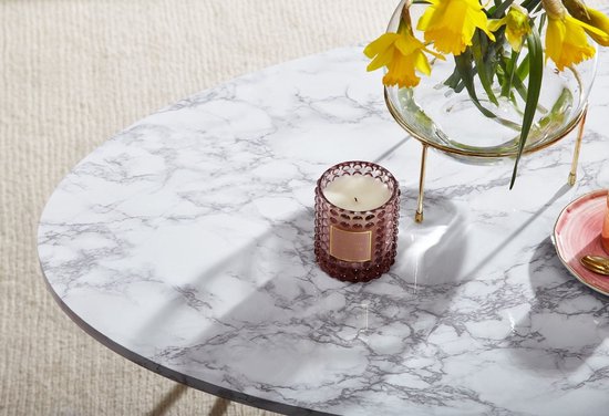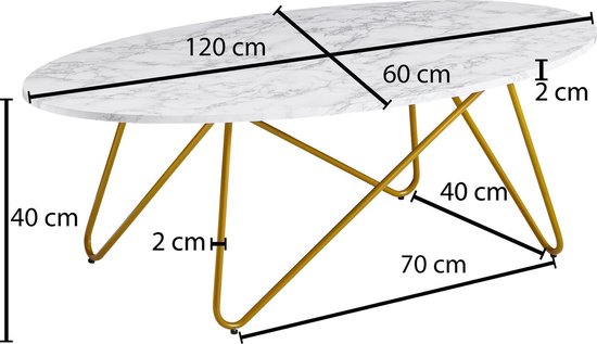 salontafel 120x40x60 cm met marmerlook wit | Salontafel met metalen frame | Salontafel ovale tafel woonkamer | Lounge tafel