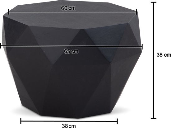Salontafel 65x65x38 cm mango massief hout zwarte salontafel achthoekig | Design woonkamertafel, salontafel, massief ruitvorm Klein tafeltje bijzettafel woonkamer modern
